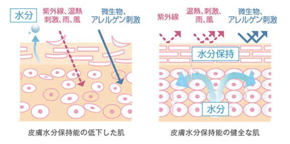 水分保持能の改善された肌ではバリア機能が整い、外的ダメージの影響を受けにくい状態になります。