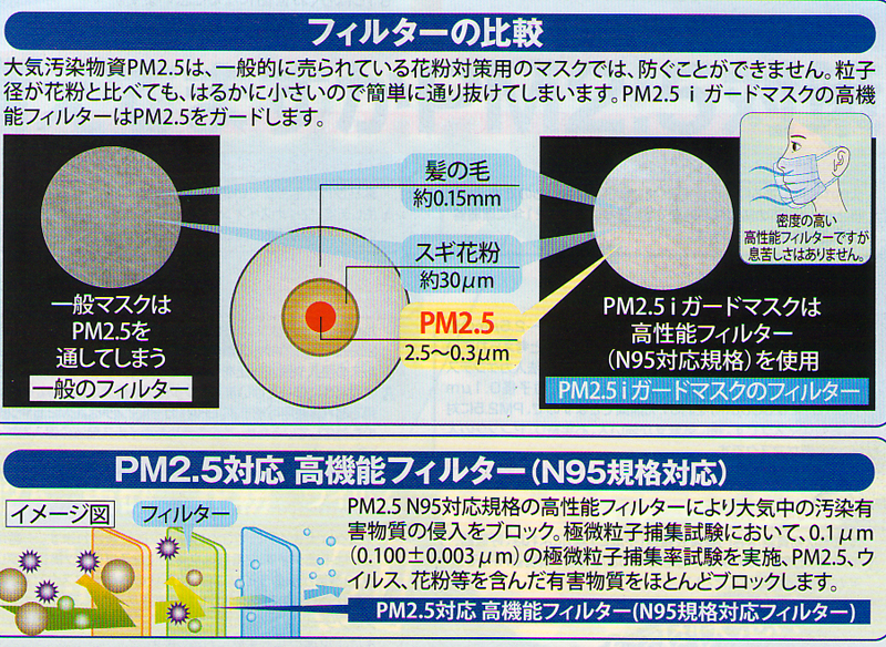 本品はPM2.5対応、花粉やウイルス対策にも役立つ大気汚染物質予防マスクです。